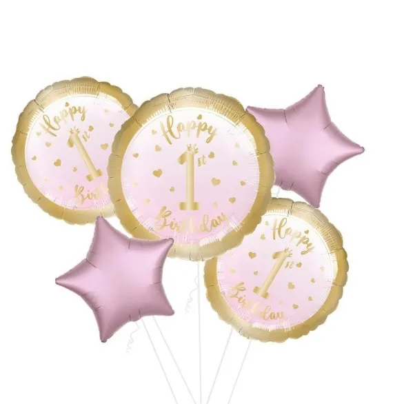A beautiful pastel pink balloon with gold print and trim to celebrate Baby's 1st Birthday. Send on its own to mark the occasion or as a bouquet of 3 or more balloons with one of our free gift options for the perfect gift package.