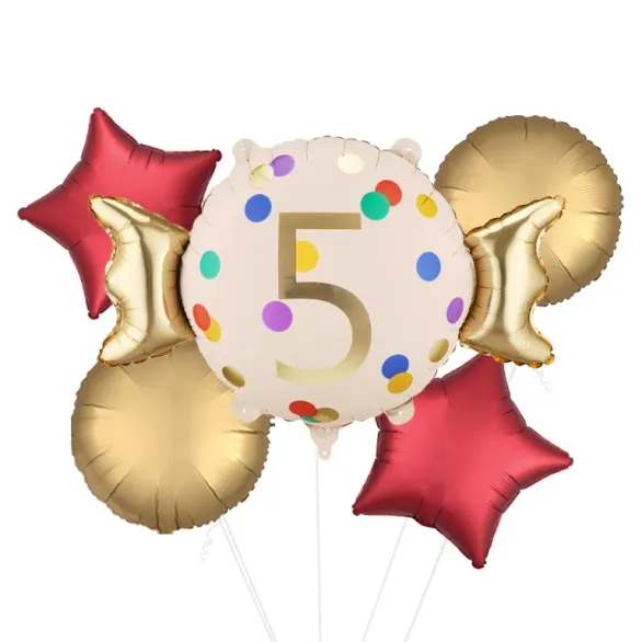 What a sweet birthday balloon for a 5th Birthday. With its candy shaped design and colourful polka dot print, it makes a wonderful centrepiece for the birthday girl or boy. While perfect on its own, it can be complemented with co-ordinating coloured balloons.