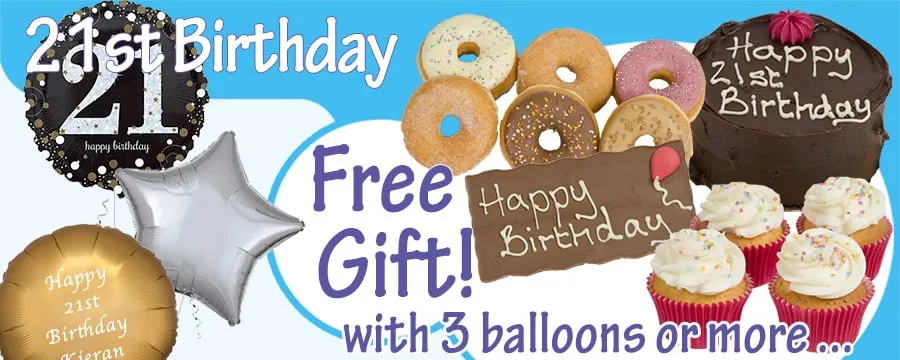 Inflated 21st Birthday Balloons for Delivery by post in the UK | Free Gifts