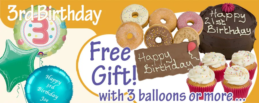 Inflated 3rd Birthday Balloons for Delivery by post in the UK | Free Gifts