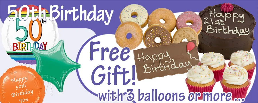 Choose from a personalised birthday cake, cupcakes, personalised chocolate bar or doughnuts worth £10.00! Add some excitement and magic to your celebration with our 50th birthday balloons, fully inflated and delivered to any UK address with balloon weights and ribbon included. Choose your preferred delivery date and don't miss out on the fun! Shop now for the best selection of colourful 50th birthday balloons delivered in a box.