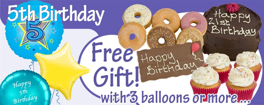 Inflated 5th Birthday Balloons for Delivery by post in the UK | Free Gifts