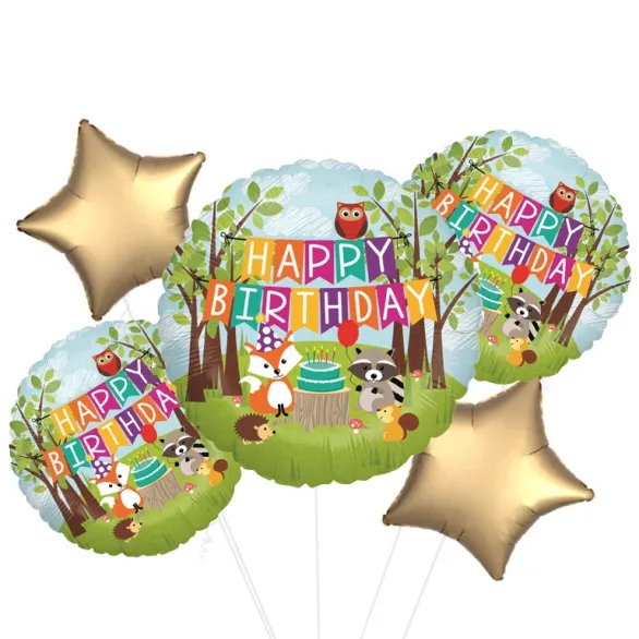 Transform your party room into a forest themed masterpiece with ths eye catching Birthday balloon. With animal prints under a birthday banner, this fun and eye-catching balloon is perfect on its own or as a bunch of 3 or more. Personalise one of the accompanying balloons if required with the name or message of your choice.