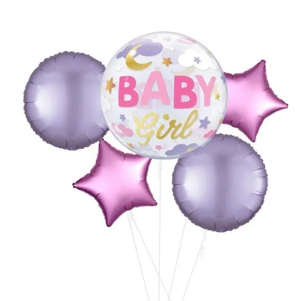 This pretty, pastel and gold print balloon is the perfect gift on its own or as a bunch with one of our free gift options to celebrate the birth of a new Baby Girl. Your balloon will arrive inflated and will float from the box when opened to reveal a fabulous round, bubble shaped, clear balloon with a colourful design.