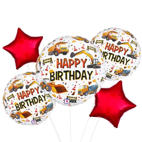Send this fun balloon to someone who loves all things construction. With a collection of diggers, dumper trucks and cranes this balloon makes the perfect design for budding builders.