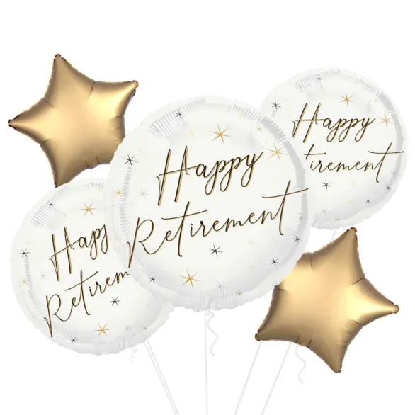 Recognise the occasion with a colourful Retirement balloon delivered on the date of your choice. With a vibrant Happy Retirement print on a glittery silver background with stars in rainbow colours, this balloon would make a beautiful centrepiece for a room or as a gift on its own.