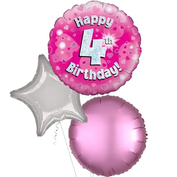Pink and sparkly for a fabulous 4th Birthday. This shimmering holographic balloon makes the perfect decoration on such an important Birthday for little ones! Watch their face light up as this brightly coloured balloon rises from the box when opened.