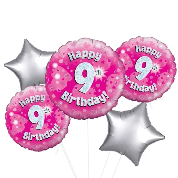 Add a little sparkle to the 9th Birthday Celebrations with this pink glittering holographic balloon.