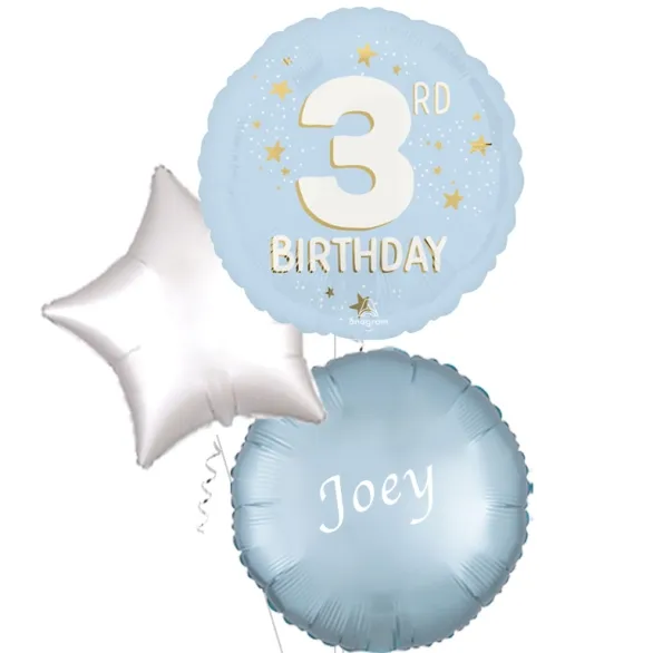 An elegant pastel blue balloon with a large No 3 print to celebrate a special 3rd Birthday. Send on its own to mark the occasion or as a bouquet of 3 or more balloons with one of our free gift options for the perfect gift package.