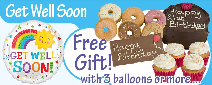 Choose from a personalised birthday cake, cupcakes, personalised chocolate bar or doughnuts worth £10.00! Cheer them up with our Get Well Soon balloons, fully inflated and delivered to any UK address with balloon weights and ribbon included. Choose your preferred delivery date and don't miss out on the fun! Shop now for the best selection of Get Well Soon balloons delivered in a box.