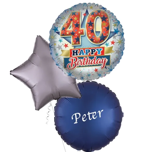 This fashionable balloon design will ensure that your 40th Birthday surprise is well received. This balloon has a different design printed on each side but includes an array of coloured star prints