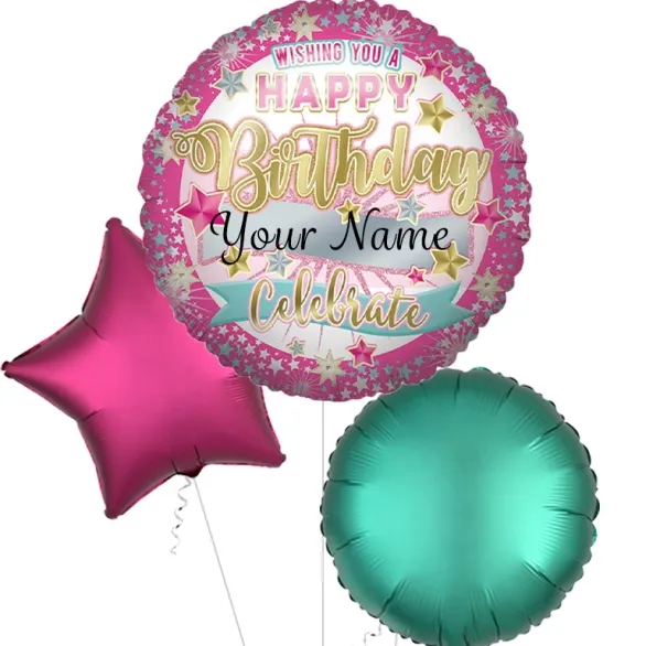 Send this super stylish balloon to someone special. With space for you to add the recipient's name, the elegant pink and silvery tones and start burst print, this balloon will delight the recipient when opened.