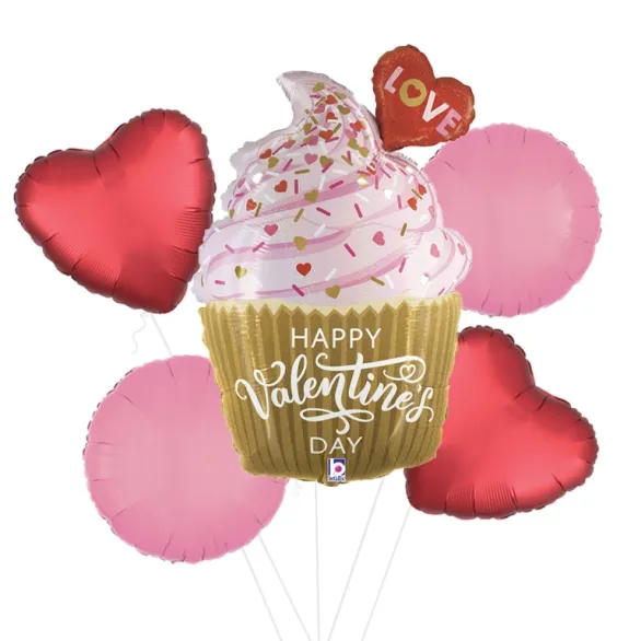 Send this delightful Valentines cupcake balloon with a glitter-graphic sheen, making it an eye-catching gift and centrepiece.